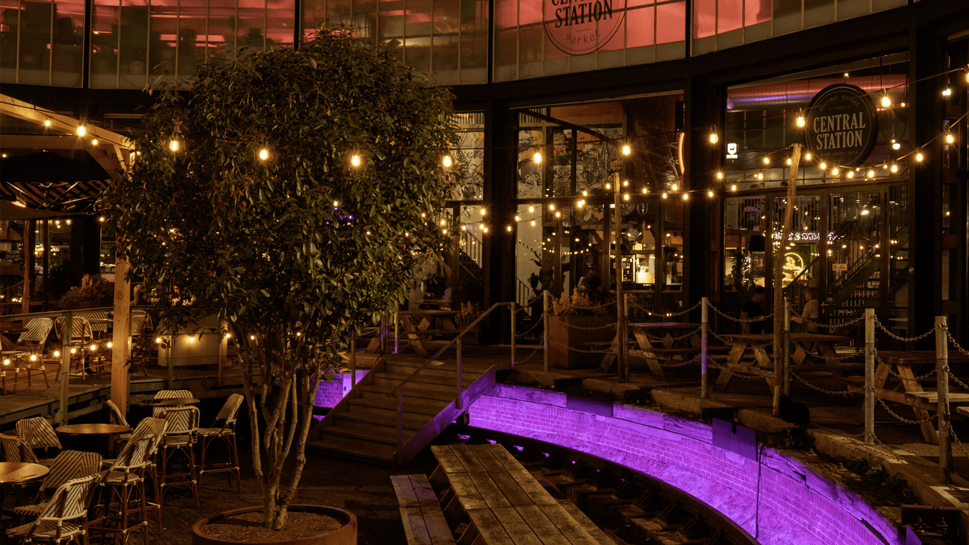 Foodmarket Tilburg benaderde AV Partner om eens samen om tafel te gaan en hier te bespreken wat wij konden betekenen voor de uitstraling van hun monumentale pand, gelegen naast het NS station in Tilburg. Enkele jaren eerder hebben wij de audio- en lichtinstallaties in het restaurant al mogen voorzien. Vanuit de klant was er de behoefte om hetgeen ze te bieden hebben, nog iets duidelijker uit te stralen richting de dagelijke passanten in dit gebied.